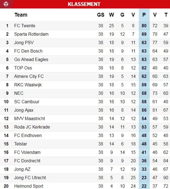 Uitslagen En Stand Keuken Kampioen Divisie Sport In Nederland